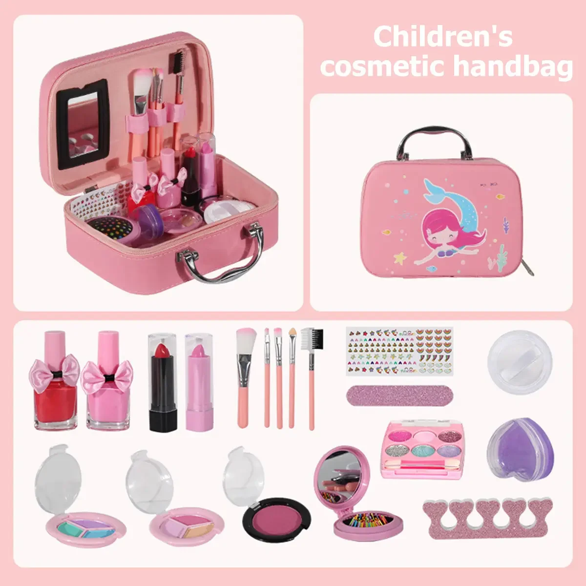 ITTL Pretend Cosmetics Washable Safe Real Makeup Set Toy with Bag for Girls Toys With Portable Box Gift